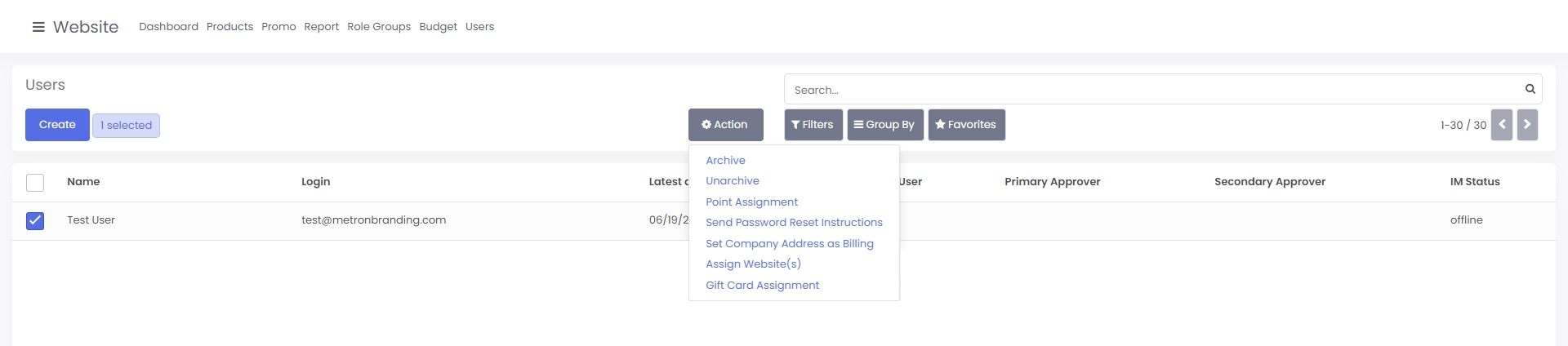 To delete a user, select the user's account on the "Users" tab. After selecting the user, click the "Action" button on the top of the page, then click "Archive." This will remove the user's access to the store while maintaining any order records and other important information.