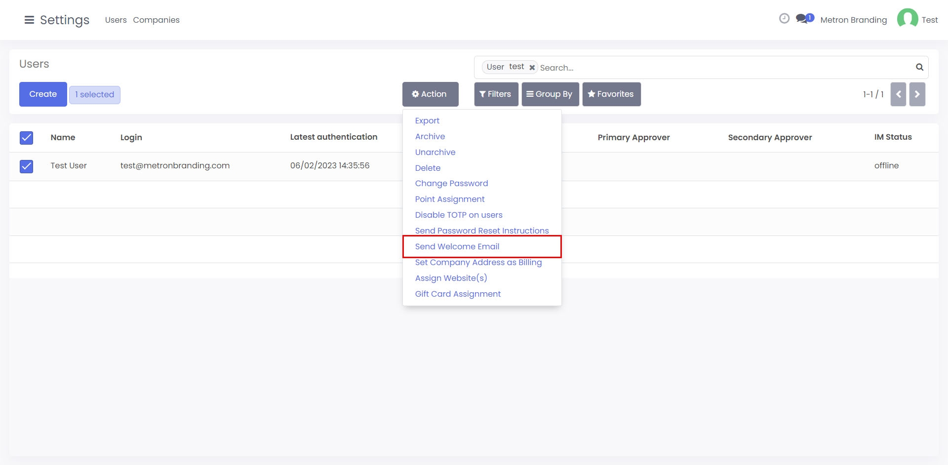 Users are automatically sent welcome emails when they are created unless the "Don't Send Email" box is checked on. Admins can send or resend welcome emails to users to have them complete their account setup. You can send out a welcome email by going to the "Users" tab on the admin panel. From there, you can select a user or multiple users, click the Action button on the top of the page and select "Send Welcome Email". This will immediately send out a welcome email to all selected users.